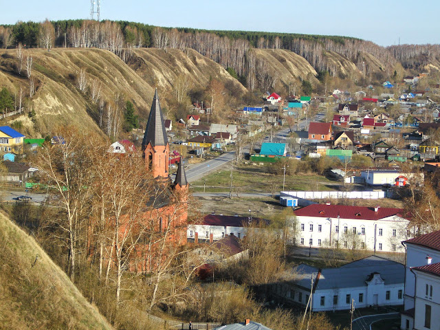 Чуть ближе к горе стоит комплекс зданий бывшей Тобольской гимназии, где учились все самые выдающиеся уроженцы города: от Ершова до Менделеева, а также бывали декабристы, интересовавшиеся вопросами народного образования. Здесь же стоит краснокирпичное здание польского костела (1900-1909гг) – ссыльных поляков в Тобольске, как нетрудно догадаться, тоже было немало.