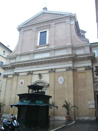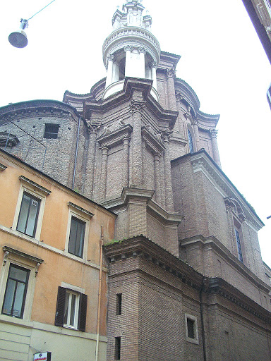 Следующей была Санта-Мария-ин-Виа, известная старой каменной иконой, но не запомнившаяся нам ничем, кроме закрытого строительной сеткой фасада (думаю, исключительно по причине нашей пресыщенности на тот момент разнообразными впечатлениями). А также тем, что недалеко от этого храма стоят колокольня Марка Аврелия и палаццо Киджи.