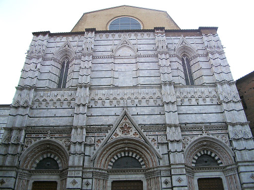 Собор, освященный в 1179 году в часть Вознесения Девы Марии, потрясает воображение - причем изнутри даже больше, чем снаружи (хотя наружность его также великолепна). Строительные работы здесь продолжались и после освящения - фасад, например, был закончен в XIV веке, купол возведен XIII. А интерьер украшали вплоть до XIX века (тогда на полу собора появилось изображение волчицы - символа Сиены).
