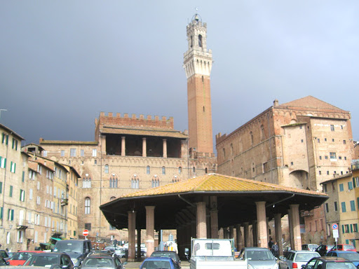 Так выглядит палаццо Публико с другой стороны - от рыночной лоджии (можно не сомневаться, тоже глубоко средневековой).