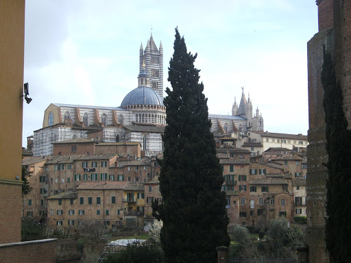 Apr. 3rd, 2011 09:09 pmУтром третьего дня отправились в город Сиену, что в часе езды от Флоренции. Поглазев немного на в меру живописные тосканские пейзажи со второго этажа автобуса, издалека узрели суровые готические очертания Сиены, которая на протяжении 4 или 5 веков была главной соперницей Флоренции за господство в Тоскане.