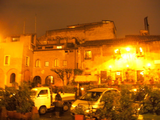 Больше никуда в этот день мы не успели (можно подумать, нам мало было!). Церковь Санта-Чечилия осматривали уже только снаружи и в темноте. Зато, придя на уютную Пьяца-ди-Мерканти, отыскали там отличную таверну, существующую (подумать только!) в этом самом здании с XVI века, где и поужинали.