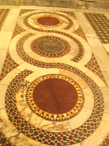 Здесь же на площади есть еще и баптистерий IV века (тоже сильно перестроенный несколько раз, но с интересными интерьерами), а также церковь Скала-Санта, где собраны величайшие христианские реликвии: от нерукотворного образа Спасителя до пролета лестницы, по которой Иисус поднимался к Понтию Пилату. Мы, правда, все это не увидели, ибо день близился к завершению и времени нам хватило лишь на собор. Зато снаружи оставшейся от доватиканских времен капеллы Сакта-Санкторум (Святая святых) есть мозаика VIII века - остаток снесенной пиршественной зала папы Льва III (никто ее не прячет, любой запросто может подойти и поглядеть - такое, наверное, лишь в Риме возможно).