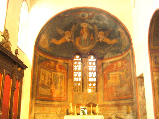 Верхняя церковь известна своими чудесными мозаиками, самая знаменитая из которых находится в апсиде и изображает Древо жизни, выросшее из Распятия и приютившее в своих ветвях множество удивительных и красочных птиц. Здесь же можно посмотреть крипту Св.Екатерины с отличными фресками Мазолино 1425 года, посвященными, естественно, житию святой.