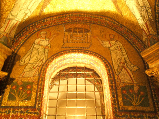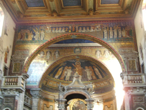 Мозаики апсиды и триумфальной арки Санта-Пракседе (не столь тщательно проработанные, как в соседней Санта-Мария-Маджоре, но очень византийские по виду и не менее прекрасные).