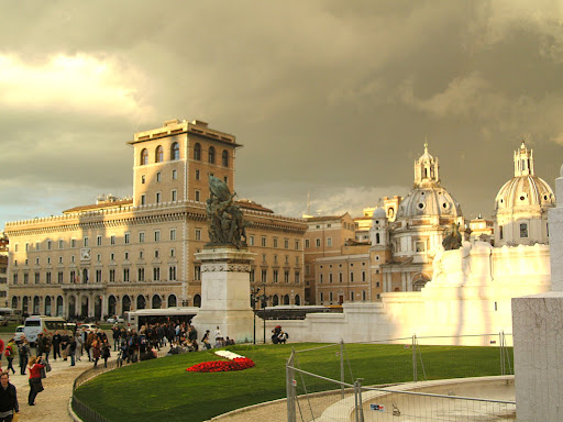 Первый ренессансный дворец Рима - палаццо Венеция (1465-1467гг) и фантастического вида небо над ним (слава Богу, ничем серьезным для нас это не обернулось).