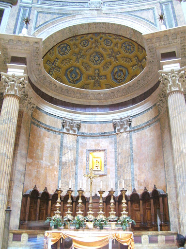 меркам своего времени, особенно если вспомнить, что нечто сопоставимое по масштабу - купол Святой Софии в Константинополе появился только 4 века спустя. Помимо этого, в Пантеоне сохранились средневековые надгробия, фрески эпохи возрождения, скульптуры и алтарные мозаики - все это в совокупности делает его одним из самых интересных мест Рима.