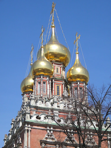 Заглянула в Лаврушинский переулок, где бываю периодически, (для немосквичей - там Третьяковка находится). Сфотографировала довольно изящную церковь Св. Николая в Толмачах (1770г, выполнена в стиле XVII века), где находится самый известный список с Владимирской иконы Божией Матери 12 века, но попасть куда можно только через галерею, а посещение музея в тот день в мои планы не входило.