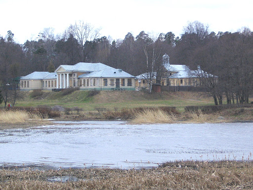 В парк попадают сквозь реконструированные пседоготические ворота, у которых находится касса и сувенирный киоск по совместительству. Сначала никакого особенного впечатления пейзаж не производит, зато можно осмотреть (только снаружи) классицистический деревянный усадебный дом (1800-е гг) и великолепный и довольно необычный для эпохи классицизма библиотечный флигель 1804-1806гг постройки. Правда, к флигелю по причине аварийного состояния и близко не подпускают (пришлось искать дырку в заборе, которые, как известно, лучшие друзья путешественника).