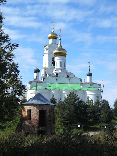 придающих сооружению вид праздничный и даже в меру экзотический. Внутрь нас, к сожалению, не пустили - как удалось узнать, церковь правится редко, основной храм монастыря - надвратная церковь Вознесения 1650-х годов (тоже довольно интересная, но уступающая во всех отношения церкви Одигитрии).