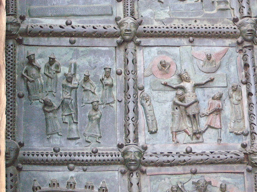 Еще один сюжет с ослом - это уже бронзовая чеканка с соборных ворот.