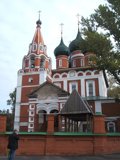 Стрелка - место слияния Волги и Которосли. На противоположном берегу находится великолепный ансамбль Коровницкой слободы (1649-1654гг) - сейчас принадлежит старообрядцам, потому попадание внутрь затруднено.