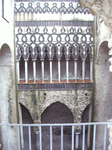 Совсем рядом с собором расположен вход на виллу Руфоло, которая относится аж к XIIIв. До поездки в Равелло я, честно говоря, и не подозревала, что в то малоромантическое время вообще существовали виллы. По виду, конечно, напоминает это, скорее, небольшую крепость: с башнями, дворами-колодцами, готической капеллой и т.п. Но здесь же и сад, и бельведер с видом на море (не очень представляю, правда, как они выглядели первоначально, все-таки вилла наверняка подергалась перестройкам и перепланировкам в более поздние эпохи).