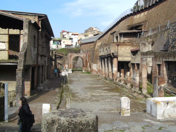Начали с Геркуланума - города, также погибшего в эпохальном извержении Везувия 79 г н.э. На текущий момент раскопана только часть Геркуланума, где-то работы еще продолжаются, но археологи уже добрались до территории небольшого современного городка Эрколано, который, ясное дело, сносить никто не собирается.