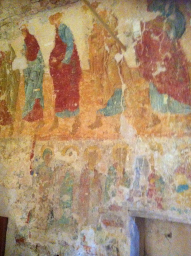 И остатки фресок XVIв в ней: процессии апостолов (вверху) и святых (внизу).