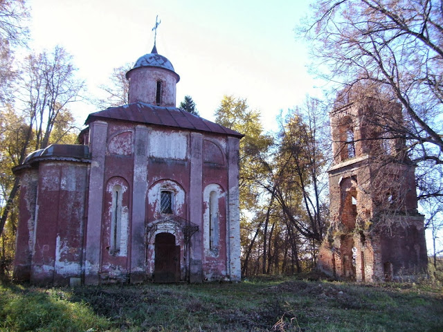 Не заехать в Юркино, которое оказалось по пути, тоже не могли, хотя когда-то я уже здесь бывала. Церковь Рождества Христова в Юркино - редкий пример сохранившегося вотчинного храма. Воздвигнут он был, по-видимому, итальянскими мастерами по заказу боярина Якова Голохвастова в конце XVв. Рядом - псевдоготическая колокольня XIXв, находящаяся в куда более плачевном состоянии, чем намного более древняя церковь.