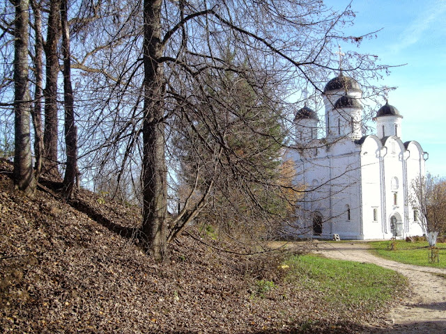 Микулино сейчас отдаленная, но вполне себе идиллическая деревня (очень чистая и ухоженная, к тому же) некогда был крупным городом - центром удельного Микулинского княжества, отколовшегося от Тверского в XVв (в это время здесь даже чеканили собственную монету). С тех времен сохранились земляные валы. Внутри них стоит большой храм Михаила Архангела (1550-е гг), построенный тогда, когда княжество уже присоединилось к Москве, но на месте более древнего собора XIVв (от которого вроде как сохранился фундамент). Внутрь попасть не удалось (служба должна была начаться нескоро, а путь обратно предстоял неблизкий). Погуляли немного по валам, сделали фотографии и отправились назад.