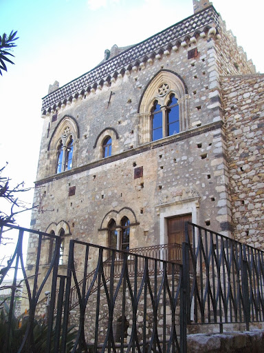 Вторую остановку сделала на площади Виктора Эммануила, одну из сторон которой закрывает палаццо Корвайя. Здание состоит из частей разного времени постройки (XIII и XV вв). Здесь сейчас музей сицилийского народного искусства, но я в него не попала. Рядом с палаццо можно посетить церковь св. Екатерины. Ее портал из белого и розового таорминского мрамора весьма хорош, а в алтаре есть картина сицилийского художника XVIв Якопо Виньерио, правда, не в очень хорошем состоянии.