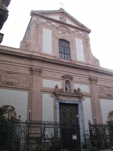 Следующим пунктом программы стала большая иезуитская церковь Иль-Джезу, она же Каза Професса (самые знаковые палермитанские церкви имеют второе имя). Сюда нужно покупать билет, и можно долго ходить, рассматривая барочные капеллы с многочисленными произведениями искусства, зайти в алтарь (у католиков женщинам в алтарь проходить можно – иногда даже в бесплатных церквях), также обильно покрытый лепниной и инкрустациями, а также посетить небольшой музей и ораторий Святого Креста (и снова лепнина Серпотты - на этот раз Прокопио, последнего представителя династии. Не самый блестящий образец жанра, но это был мой первый ораторий, потому впечатление произвел), а также спуститься в крипту с монашескими захоронениями. Короче, занятие минимум на час.