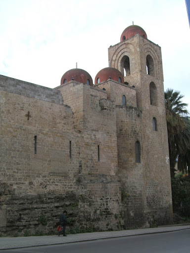 Церковь Сант-Джованни-дельи-Эремити (сер. XIIв) - один из самых известных монументов норманнской эпохи со всеми вытекающими: комплекс кубических объемов. Интерьер, к сожалению, до нас почти не дошел - голые стены и своды, лишь в одном месте сохранились фрески XIIIв. Зато здесь очень уютный двор с замечательным садом - просто рай земной посреди шумного города.