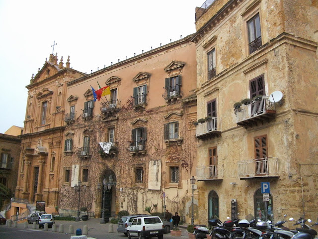 Когда я выходила из музея, смотритель посоветовал позвонить в соседнюю дверь и попросить насельниц местного монастыря открыть церковь (которая музею не принадлежит). Я так и сделала, и через 5 минут появилась очень дружелюбная монахиня с ключом, сопроводившая меня в церковь Санто-Спирито. Церковь оказалась довольно интересной. Первым делом обратила внимание на 4 рельефа Джакомо Серпотты, которым я к тому времени, проведя в Палермо лишь день, не успела еще пресытиться. Замечательная лепная композиция (тоже Серпотта) находится в алтаре – благословляющий Бог-отец (вообще это называется "Триумф святого духа"), когда стоишь прямо под ним, выглядит особенно эффектно (никаких проблем с проходом в алтарь – монахиня сама меня туда отвела). Пишут, что сестры делают какие-то местные сладости, которые можно купить прямо в монастыре, но подробнее выяснять вопрос я не стала, поскольку спешила дальше.