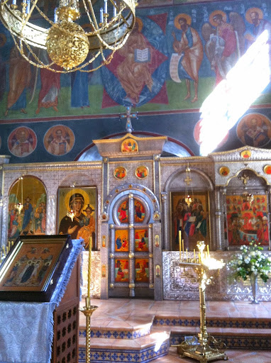 Небольшой подмосковный город Звенигород – некогда центр одноименного удельного княжества (1339-1492гг). От тех времен до нас дошла церковь Успения Богородицы на Городке (1396-1399гг), расположенная на довольно высоком холме в окружении земляных валов. Храм относится к древнейшим в Подмосковье, кроме того, внутри сохранились довольно большие участки росписи, авторство которых приписывают не кому-нибудь, а Андрею Рублеву. Уж не знаю, как относиться к подобной атрибуции (по крайней мере, не слышала, чтобы кто-то ее оспаривал), но то, что в сарае неподалеку около 100 лет назад был обнаружен т.н. Звенигородский чин (Деисус работы Рублева), нынче экспонируемый в Третьяковке, – факт довольно известный. Храм действующий, но обычно открыт и доступен для осмотра (по крайней мере, в летнее время), мне удалось даже пофотографировать – не очень вольготно, конечно, но и не слишком маскируясь.