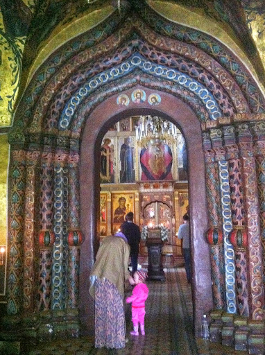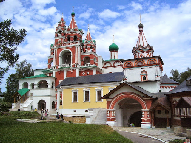 Недалеко от Городка есть еще один образец древнерусского зодчества – Савино-Сторожевский монастырь. Большая часть построек относится здесь к XVIIв (монастырь был обустроен на пожертвования Алексея Михайловича, который часто бывал здесь с семьей). Но есть и более древний памятник - Рождественский собор 1407г. Кстати, я впервые застала его открытым (хотя бывала здесь ранее раза 3, наверное, - и всегда наблюдала закрытую дверь). Собор расписан полностью, но фресок ранее XVIIв, похоже, не осталось мало. Да и уровень живописи здесь не самый высокий (хотя расписные порталы традиционно хороши).