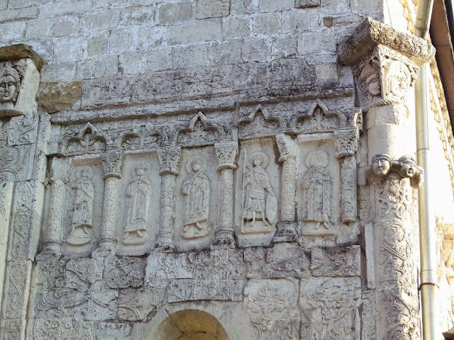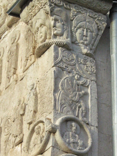 И снова резной аркатурно-колончатый пояс со святыми и колонка с капителью.