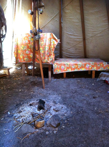 Интерьер настоящего летнего чума не столочень пригляден: пол земляной, шкуры оленьи.
