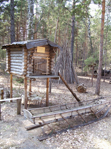 Еще одна часть музея – небольшая экспозиция под открытым небом, где реконструированы традиционные деревянные жилища и хозяйственные постройки хантов и манси (в их современном виде), а также пара ненецких чумов (зимний под оленьими шкурами и летний под брезентом), сооруженных, как мне рассказали, ненцем - сотрудником музея.