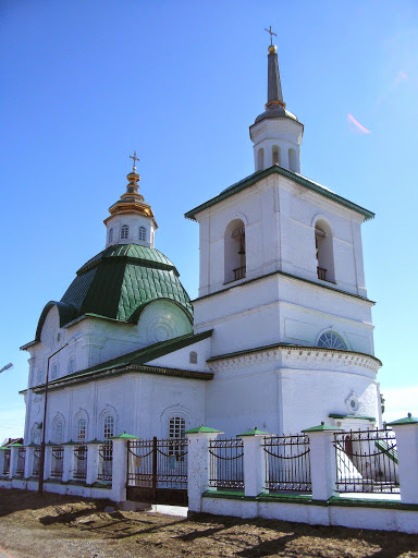 На обратном пути в Тобольск водитель завез меня в Ивановский монастырь, основанный в сер.XVIIв. Его старейшая постройка – отреставрированный собор Иоанна Предтечи – это типичный классицизм (1814г). Как и стоящий рядом Троицкий храм-ротонда (1900г). Впрочем, Ивановский монастырь интересен даже не церквями, а своим местоположением – поселок Прииртышский (где еще остались по-сибирски добротные большие деревянные дома) расположен в очень живописном месте – посреди тайги на перепаде высот Западно-Сибирской возвышенности.