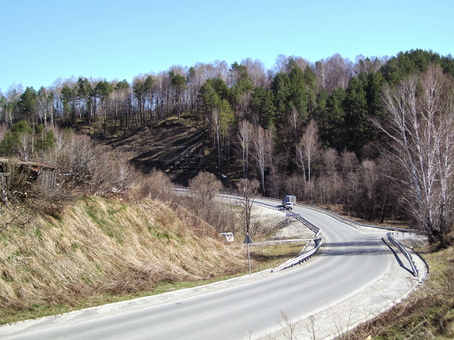 Долина Иртыша и его поросший тайгой высокий берег. Возможно, май - не самое лучшее время для таких съемок -серовато получилось. Судя по фото, летом здесь все зеленое, зимой белое. Но все равно очень величественно.
