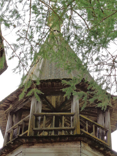 Шатер колокольни и купол каменной церкви вмч. Георгия - деревянные, хоть главки и крыты железом.
