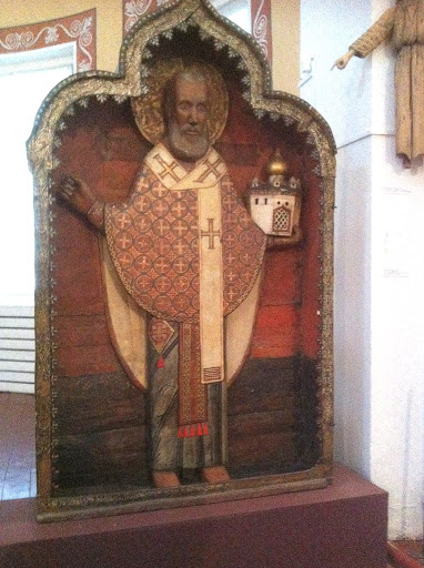 2. Небольшая, но крайне любопытная экспозиция местной иконы и религиозной деревянной скульптуры размещена в Зосимо-Савватиевской церкви (1819г), что стоит на некотором отдалении от центра города. Иконы представлены начиная с XVIв (именно они как раз и показались мне самыми интересными – очень своеобычная манера письма, надо сказать), а скульптура, в основном, XVIII-XIXвв. В принципе, круглая скульптура православной церковью не поощрялась (считалось, что это больше свойственно католикам), но для северных земель, где вопрос обращения в христианство местных фино-угорских племен был актуален довольно долго, делалось некоторое послабление: скульптура в миссионерском деле здесь была более эффективным инструментом благодаря большей наглядности и соответствию местной религиозной и художественной традиции.