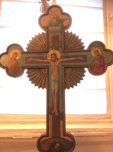 Крест запрестольный (XIXв). Вообще, судя по каталогу, собрание резных рельефных крестов в музее большая, но мы видели только этот не самый интересный экземпляр. Где находятся все остальные, не знаю.