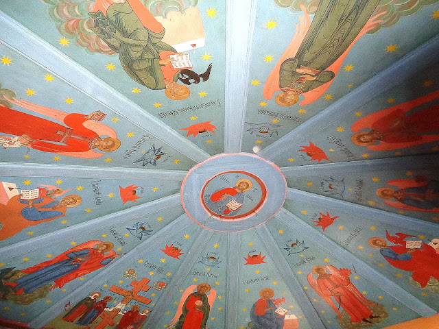 "Небо" Пятницкой часовни (XIXв) со сдвоенными фигурами евангелистов и архангелов.