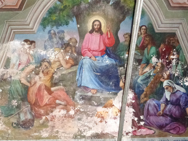На сводах основного объема церкви есть росписи на редкую тему: заповеди Блаженства: